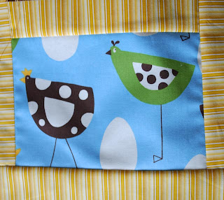 taking a sewing class she fell in love with a funky bird/chicken fabric and thought it would make a good quilt. Here's the first few test blocks that she has pieced.